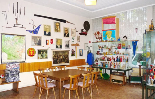 Auf dem 6000 m² großen Grundstückgibt es eine Außenterrasse und die große Spiel- und Liegewiese. Ein hauseigener Parkplatz befindet sich links vom Haus, dieser kann auch von Reisebussen befahren werden. Es gibt Feuerschalen, 3 Holzkohlegrills, eine Bibliothek und andere Freizeit- und Aufenthaltsräume. Im Foyer und im Saal, sind in 10 Vitrinen, thematisch geordnet, über 1000 Artikel und Alltagsgegenstände aus der Zeit der DDR ausgestellt.